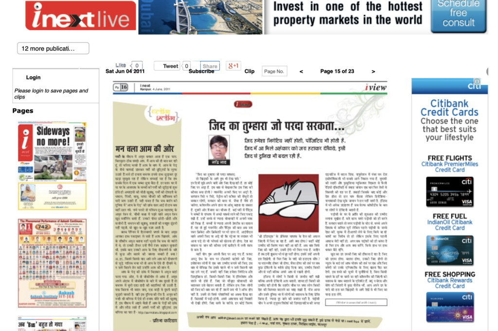 [2011] ब्लॉग ‘आम का पेड़’ की राष्ट्रीय अख़बार के कॉलम में चर्चा